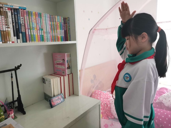 早上8點,沙欄小學全體隊員進行“致敬,英雄的你”“云”升旗儀式。“云”升旗儀式結束后進行國旗下講話。