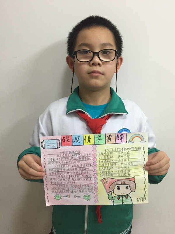 通過本次主題活動讓同學們受到了一場靈魂的洗禮,受到了教益和感染,很多孩子紛紛以自己的方式,通過繪畫、朗誦、講故事、寫信等,詮釋了自己心中的雷鋒精神,用自己擅長的方式為奮戰在一線的叔叔阿姨加油鼓勁,用稚嫩的童聲表達對他們的感謝和敬意,“雷鋒精神”已成為一顆種子在孩子們幼小的心靈生根發芽。