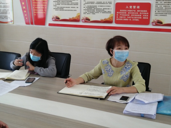 李委員還翻閱了學校制定的應急預案、開學方案、物資的出入登記等方面資料 ,接著吳校長從學校的辦學基本情況、防控的安排、物資的準備、線上教育的安排等方面作了詳細的匯報。李委員著重強調防控期間要做好專業醫療人員進校培訓、開學指引、消毒人員與保安人員培訓、校門入口登記安排、線上教育、防疫宣傳、學生進校安排、隔離室圍閉等方面工作,并要保證線上教學有序進行,杜絕疫情在校園發生及蔓延。