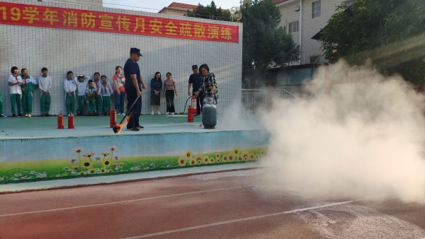 在消防應急疏散演練前,各班班主任按學校制定的演練方案組織學生學習,并強調安全注意事項,預先排好班級隊伍,同時也安排了各樓班課室、走朗、樓梯口、樓梯拐彎處足人員,參加演練的工作人員,提前5分鐘就位,確保做好安全保護工作。當演練信號發出后,處在樓梯口的教師進行指揮,各班迅速在教室過道上整理好隊伍,按照預先排好的順序疏散,排成兩路縱隊,并彎腰捂嘴護頭有序前進。隨后各班主任把所帶學生送到安全地帶后應立即清點人數,并報告現指揮人員吳校長。消防安全疏散演練結束后,消防大隊人員進行了常見火災滅火實戰演練,全體師生懂得了正確使用滅火器的方法,掌握了消防安全的相關知識,提高了抗擊火災突發應急事件的能力。