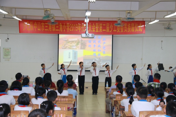 2019年11月19日下午,少先隊中山市三角鎮三角小學召開2019年少代會暨第二屆少工委委員換屆會議。三角鎮團委書記楊慧芬、鎮團委副書記周瓊珠、三角小學黨支部書記、副校長陳見洪以及少先隊員代表等150人參加活動。