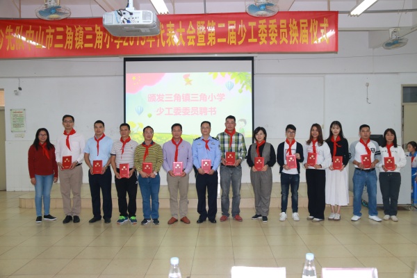 活動最后,鎮團委副書記周瓊珠為學校第二屆少工委主任、副主任、家長委員們頒發了聘書。新當選的三角鎮三角小學少工委主任陳見洪致閉幕詞。他表示當選為新一屆少工委主任,感到十分榮幸,也深感肩上的責任重大,必將“不忘初心、牢記使命”,牢牢堅持立德樹人的根本任務。