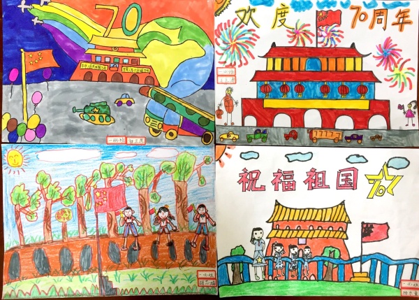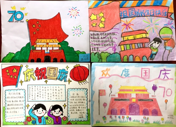 本次繪畫及手抄報以“慶祝中華人民共和國成立70周年”為主題。根據(jù)每個年級學生實際情況分為:一至三年級以畫國旗國徽為內(nèi)容,四至六年級以“慶祝中華人民共和國成立70周年”為”為主題。
