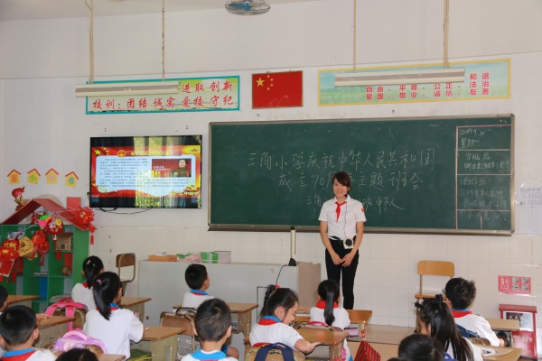 為熱烈慶祝中華人民共和國成立70周年,進一步增強隊員們的愛國情感、民族精神和民族自豪感。2019年9月30日,三角鎮三角小學開展“慶祝中華人民共和國成立70周年”主題隊會。