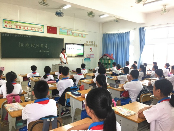 為全面貫徹黨的教育方針,落實立德樹人的根本任務,切實防治校園欺凌和暴力事件的發生。2019年9月16日上午,三角鎮三角小學開展“拒絕校園欺凌”主題隊會活動。