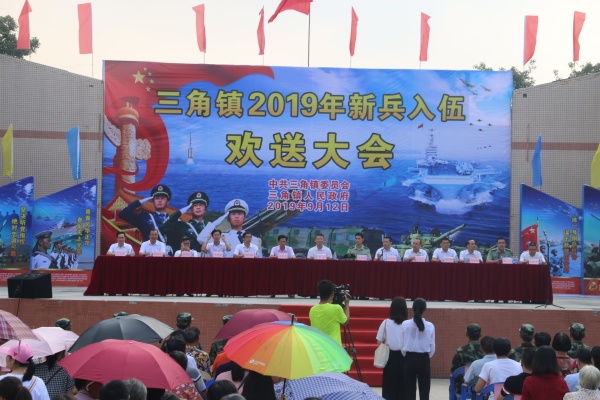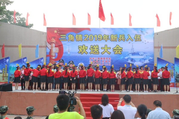 三角小學(xué)少先隊(duì)鼓號(hào)隊(duì)在主持學(xué)校全面工作的陳見洪副校長(zhǎng)、王輝副校長(zhǎng)、霍廣耀主任、許嘉天、吳同科、吳麗瓊、周嘉欣、綦鑫等老師的帶領(lǐng)下,組織了一支由70名學(xué)生組成的隊(duì)伍參加了此次新兵入伍歡送儀式。