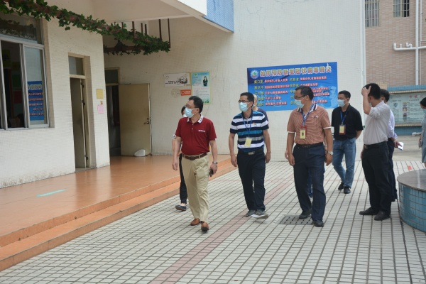 廖誠副書記一行抵達沙欄中學,在該校校長梁炳華的陪同下,實地查看了該校初三教室、留觀室、應急通道等場所,檢查了“防疫應急箱”中的防疫物品是否齊全,向駐校醫生詢問了該校留觀室的管理細則和物資使用情況。向該校校長詢問了初三學生開學后的學習、活動、就餐、校門口學生測溫點和家長接送緩沖區的安排等情況。