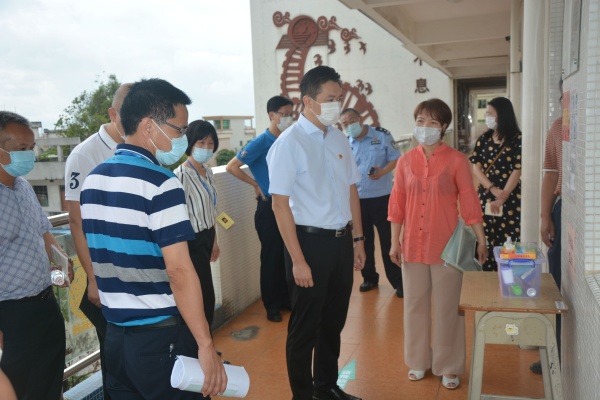 5月8日,三角鎮鎮長李凱航來到沙欄中學檢查第二批師生返校復學準備工作。鎮黨委委員李銘霞等鎮領導,鎮文體教育局、教育事務指導中心、疾控中心、衛計局、市場監管分局、公安分局等部門負責人參加了檢查。
