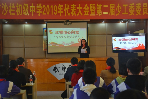 少先隊中山市沙欄初級中學2019年代表大會于12月27日召開,三角鎮團委副書記、少工委總輔導員周瓊珠,沙欄初級中學校長梁炳華及學校各中隊少先隊員代表、輔導員代表等出席了會議。