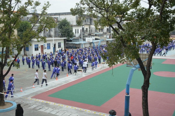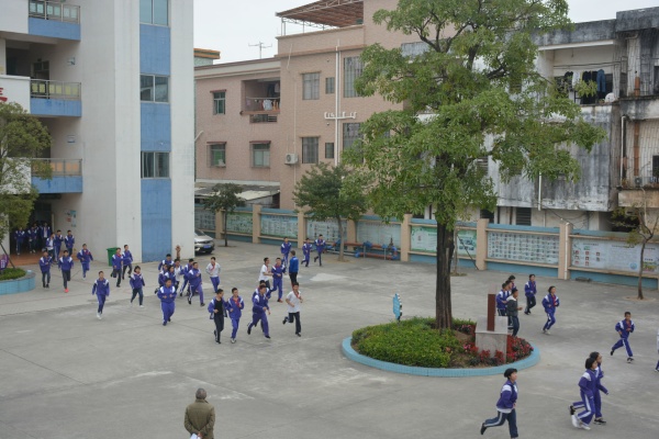 下課時急促的警報聲突然響起,該校三個年級的學(xué)生迅速走出教室,排好隊伍,按照指定的路線從教學(xué)樓內(nèi)撤離,前往學(xué)校操場集合。學(xué)生們的行動規(guī)范迅速,整齊劃一。各班學(xué)生到達(dá)集中地點后,以班為單位集隊,各班應(yīng)立即清點人數(shù),并向總指揮報告。整個疏散的過程只用了2分鐘,整個疏散井然有序,忙而不亂,取得了圓滿的成功。