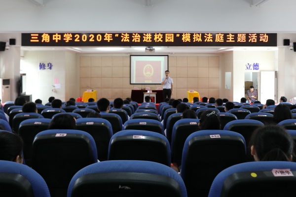 為切實加強青少年法制教育,增強學生的安全意識,提升校園安全建設,5月26日,三角中學在報告廳舉行了一場“法治進校園”——青少年模擬法庭暨普法宣傳講座。