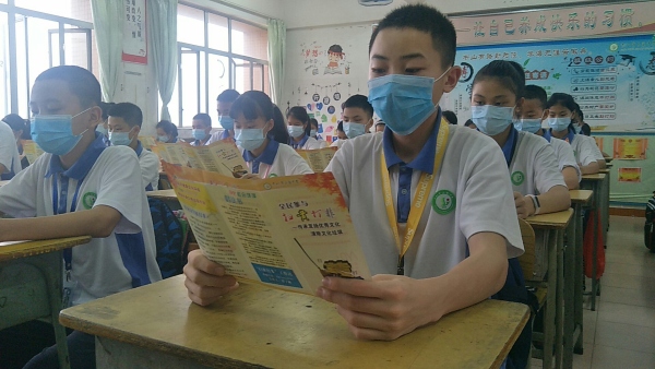 班會課上,同學們首先閱讀“打黃掃非”倡議書,并在倡議書上集體簽名,表明決絕不健康內容、拒絕侵權盜版的態度;接著學習“掃黃打非”宣傳手冊,了解“黃”“非”內容的危害性,要求做到堅決抵制不良內容、非法出版物。
