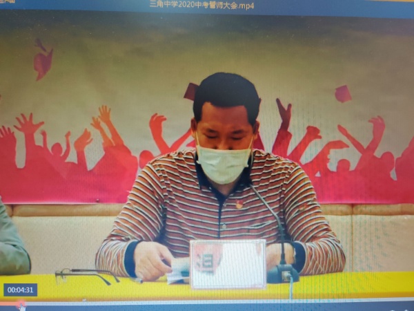 九年磨一劍,六月試鋒芒。為迎接即將到來的中考,充分調動初三年級師生沖刺中考的積極性,激發學生們的學習激情,營造濃厚的備戰中考的學習氛圍。3月22日晚上,三角中學舉行了2020年中考沖刺誓師線上視頻大會,家長和孩子在家一起收看。活動由何志楊級長主持。