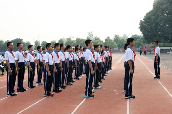 隨著周級長響亮地宣布“三角中學初一新生風尚檢閱,現在開始!”,同學們在班主任及班長的帶領下,個個挺起胸膛,動作整齊劃一,步伐堅強有力,口號鏗鏘響亮,步調一致方陣整齊逐一邁進會場,展示著飽滿的精神,整齊的步伐,昂揚的面貌。整個檢閱過程嚴肅井然,秩序良好。場下時時爆發出整齊、文明而熱列的掌聲。