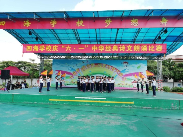 為加強中華優秀傳統文化教育,弘揚中華文化,朗誦傳統經典詩文,讓學生在朗讀中親近中國文化,在親近中熱愛中華文明,在熱愛中傳承傳統思想,在創新中弘揚民族精神,四海學校于5月25日上午舉行了慶“六·一”誦讀中華經典詩文,傳承優秀文化比賽活動。