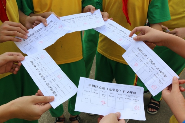 活動伊始,同學們紛紛揣著兌獎券信心滿滿地出發,開始自己的心理知識闖關之旅。游園活動井然有序地進行著,“心海遨游”讓學生汲取滿滿的心理健康知識能量;“心有靈犀”、“過河搭橋”、“背靠背運球”讓學生們體驗團結協作的力量,感受“眾人拾柴火焰高”的魅力;“你畫我猜”考驗學生之間的默契配合,更增進了彼此之間的友誼;“盲人與拐杖”讓學生體驗到理解與信任,并學會換位思考;“我的幸福源泉”,寫下一件快樂的小事,匯聚點滴的快樂,讓學生們體會到快樂其實很簡單。同學們經歷一個個關卡的考驗后,一張張空白的兌換券,蓋滿了鮮艷的印章。同學們爭先恐后地來到幸福終點站,憑借兌換券兌換自己心儀的獎品,臉上露出燦爛的笑容,歡聲笑語響徹整個高平校園。