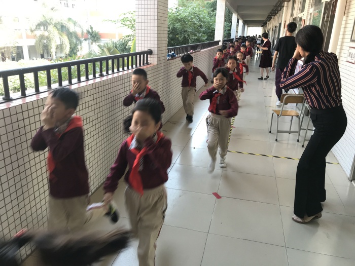 上午10:00,隨著“嗚嗚……”應急警報聲的響起,演練正式開始。各年段負責人及各樓梯口值崗老師第一時間到崗,協助學生隊伍快速、有序的撤離;各班主任、任課教師指導學生彎腰慢跑,同時用手帕等捂住口鼻,跟著隊伍迅速撤離到指定的安全區域。整個過程師生都能做到有秩序、快速,沒有出現混亂的場面。演練結束后,各樓層負責人第一時間將應急疏散情況反饋給陳文麗主任,并對各項細節問題進行小結。這次的消防應急疏散演練活動進行得很順利,安全撤離用時2分40秒。