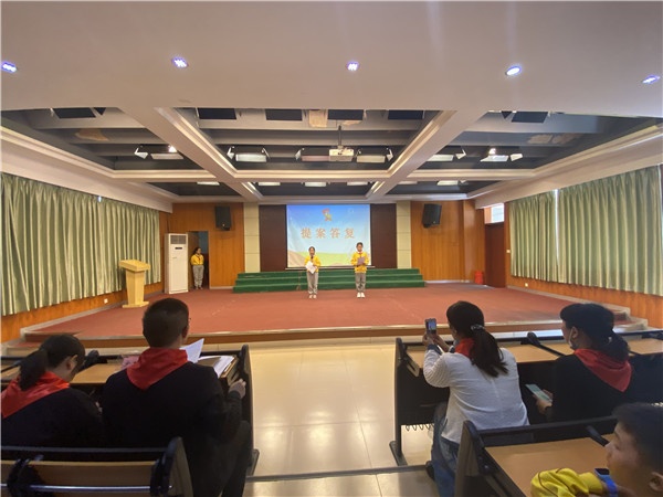 接著進(jìn)行大會(huì)議程,少先隊(duì)員熱門提案的現(xiàn)場(chǎng)答復(fù)環(huán)節(jié)。大隊(duì)輔導(dǎo)員將收集到的提案一一匯總,包括了后勤、學(xué)生發(fā)展、活動(dòng)舉行等各個(gè)方面。其中8個(gè)小提案的答復(fù),關(guān)乎到隊(duì)員的興趣與愛(ài)好,更是引發(fā)了全場(chǎng)的共鳴,將本次的大會(huì)推向了高潮。 隨后主持人宣布了新一屆大隊(duì)委組織架構(gòu)、學(xué)校少工委組織架構(gòu)。最后由謝萬(wàn)明主任致閉幕詞,全體隊(duì)員呼號(hào)、退隊(duì)旗。