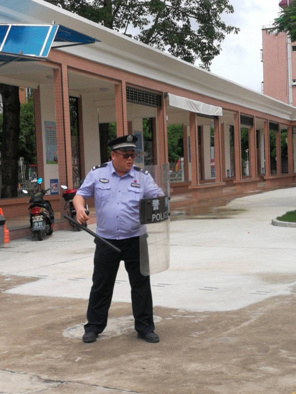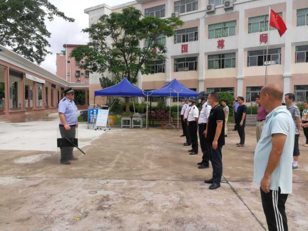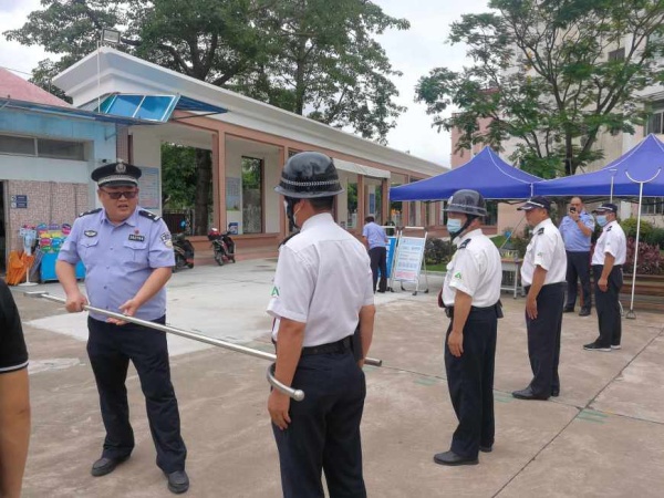 在演習前,駐校民警葉青同志為保安和在場的老師講解了反恐防暴知識,教會大家如何使用安防器械,以及對敵格斗要領和自我防護等內容,還現場演示了各種反恐防暴器具的使用方式。