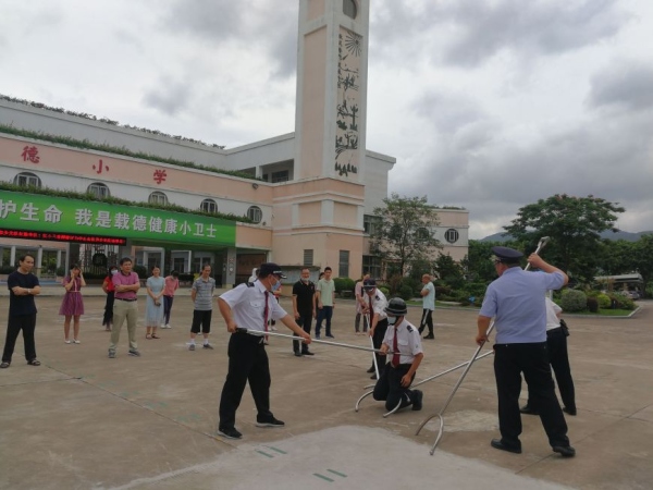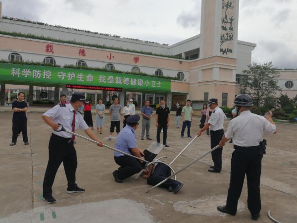 為了提高學校應對突發事件能力,全面提升學校安保人員和教職員工的安全意識和應急能力,進一步構建和諧平安校園,2020年6月9日三鄉鎮載德小學結合學校實際情況,開展了安保應急處置演練。