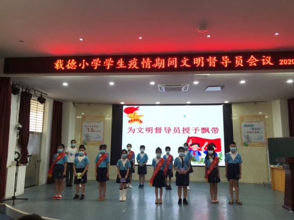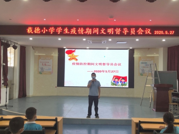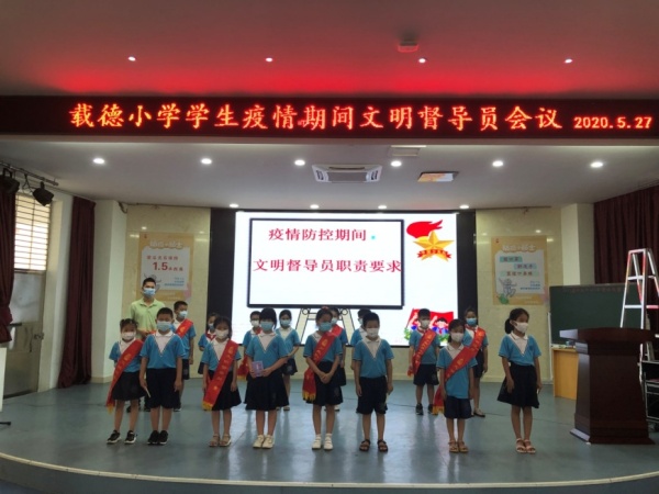 為加強學校疫情防控,確保孩子們身體健康,充分發揮少先隊干部在學校的管理作用,營造安全、文明的校園氣氛,三鄉鎮載德小學于5月27日開展疫情期間文明督導員會議。