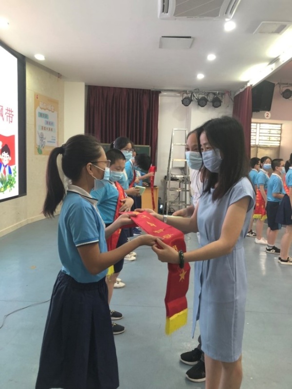最后,各年級組長為文明督導員們頒發記錄本和紅飄帶,文明督導員們拿著記錄本,將認真記錄同學們的行為情況,披上紅飄帶,將努力承擔起創建文明班級、文明校園的責任。