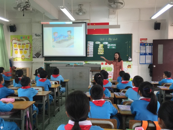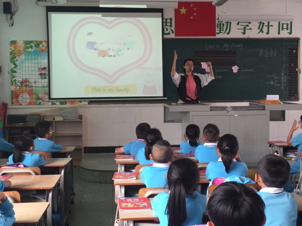 在第二節(jié)課,來自載德小學(xué)毛志敏老師展示一節(jié)三年級上冊My Family的詞匯課。毛老師本節(jié)課注重營造和諧融洽的課堂氛圍、教態(tài)自然,語調(diào)親切,并能不斷鼓勵學(xué)生,給三年級剛學(xué)英語的學(xué)生足夠勇氣去嘗試用英語來表達(dá)。毛老師通過唱歌方式調(diào)動學(xué)生學(xué)習(xí)氛圍,設(shè)置小豬佩奇介紹家人的情景引入本課的詞匯和句型,最后通過游戲和介紹自己家人的任務(wù)來鞏固所學(xué)的目標(biāo)語言。整個教學(xué)環(huán)節(jié)環(huán)環(huán)相扣,思路清晰,課堂氣氛輕松活潑。