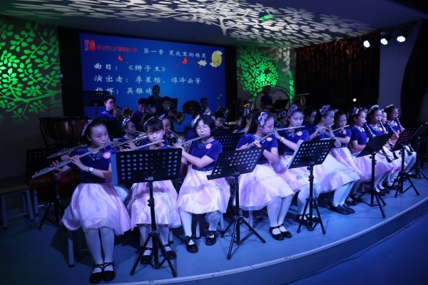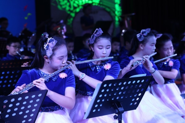 夜已深,管樂團的小小演奏家們帶我們來到最后一個篇章,管樂團的老師們為我們帶來的《ode to joy 》、《music from the royal fireworks》、《livin’la vlda loca》回味無窮,小號吹起《莫扎特的旋律》輕快跳躍,C團演奏的《windsong》、《zap》酣暢淋漓,高潮迭起。