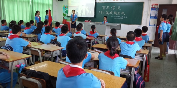 接著,低、中、高三節打磨多次、集集體智慧的少先隊活動課今天分別在二(2)中隊、四(2)中隊和六(2)中隊呈現,各個中隊都圍繞“祖國發展我成長,尋訪三鄉新變化”這一主題,根據少先隊員的年齡特點,從不同的角度尋找三鄉的新變化,運用了視頻、小品、知識問答、童謠、解說、唱歌、現場互動等多種形式展示了三鄉的新變化,更展現了少先隊員們積極向上、陽光自信的風采,激發了隊員們熱愛家鄉、熱愛祖國的情感。
