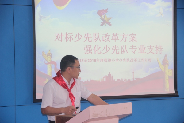 在會議室里,毛義祥校長以《對標少先隊改革方案,強化少先隊專業支持》為主題,緊扣“鞏固組織基礎”、“提升隊伍素質”、“夯實陣地建設”和“創新活動開展”四個方面介紹了學校一年來的少先隊改革工作情況,根據《少先隊改革方案》,學校扎實推進改革,促進少先隊工作制度化、專業化、系統化。