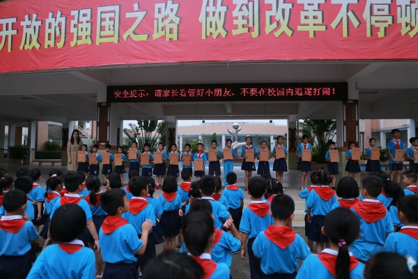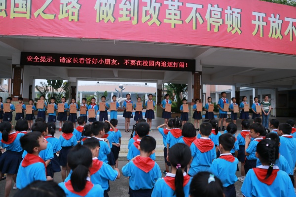 首先,全體一年級學生表演朗誦節目——《聲律啟蒙》拉開本次閉幕式,小朋友們精神抖擻、笑容滿面地展示了日常的精神面貌,在朗朗書聲后獲得了全校師生的掌聲和歡呼!鼓舞同學們充分利用每天的晨讀,堅持每天閱讀!