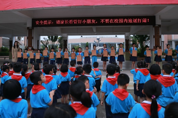 最后,每班代表上臺領取各班的閱讀證書和“閱讀之星”徽章,何旭蓉主任和鄭玉茹主任為班級代表頒獎,全場同學如獲珍寶,體會到閱讀帶來的樂趣和魅力!各班隨后在班級進行頒獎。