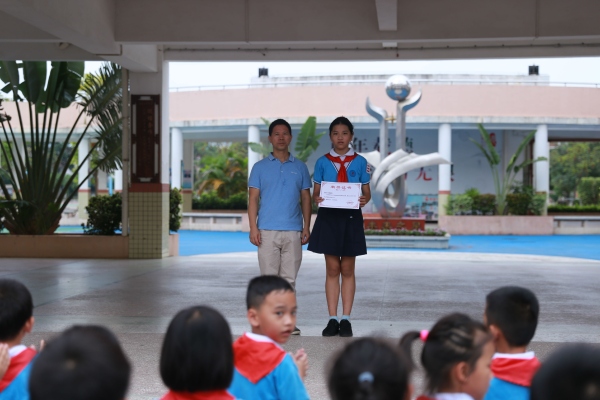 然后,載德小學教導處孫瑋潔副主任從二字“實”和“廣”來總結本次讀書節活動。第一,過程實。清晨早到校進班看書,晚間家庭看書,完成閱讀計劃單,開展年級共讀,還開展全校性閱讀考級活動,全體語文老師跟進、反饋每一項活動。第二,參與面廣。人人參與到活動中,完成計劃表全校共有987名同學,讀書摘記本全優的有1005名,605名同學通過能力檢測,510名學生獲得閱讀之星。第三,效果實,扎扎實實地開展,一步一步推進。不僅同學們閱讀,老師們也閱讀,學校聶麗帆等9位青年教師周周閱讀,周周做讀書筆記,讀書與寫作共進。鄺梓欣老師、孫瑋潔老師獲得三鄉鎮論文評比一等獎,彭伶俐副校長、凌晶老師的論文相繼發表,趙淑珍副主任獲得廣東省書香建設推廣家長代表,全校同學收獲良多!