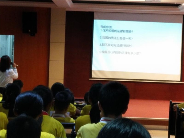 為了弘揚憲法精神,增強學生和教師們的憲法意識,中山市三鄉鎮白石環小學積極響應國家號召,于2019年11月27日下午在多媒體室開展了高年級學生的“憲法知識講座”。講座邀請了廣東盈進律師事務所律師劉山山進行別開生面的講座。