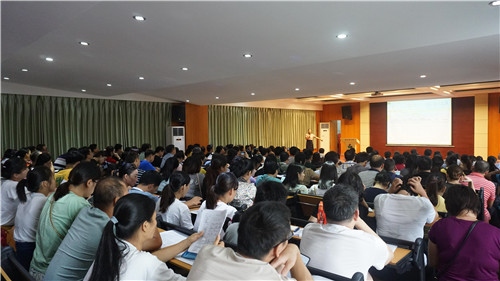 上午,新生在教室跟隨班主任練習各項課堂常規,與此同時,一年級全體家長則集中階梯室,參加新生家長會——入學指南。會場上,首先由邱運來副校長作了《共商教育大計》的講座,向家長們介紹了學校的辦學理念和辦學特色,學校秉承校訓“好習慣,好人生”,以“打造陽光、優雅、詩意校園”為辦學目標,把“培養優雅的學子”作為育人目標,全方位地向家長們展示了白石環小學在辦學、育人、創新成果等方面所取得的喜人成績。緊接著,德育處謝萬明主任結合課件圖片向家長們講解學校接送制度和安全要求,認真、細致地對家長接送車流的交通路線進行分析,希望學生們能高高興興上學,平平安安回家。之后,教導處李惠霞主任作了學校的整體課程介紹和學生學籍填寫規范的講解。