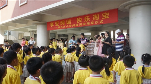 6月28日早上,白石環小學舉行了閱讀淘寶抽獎儀式。這是白石環小學第十二屆讀書節系列活動中的一項:通過閱讀淘寶,激勵更多的孩子自覺堅持每天讀課外書,積極準備閱讀考級,勤寫讀書心得等。