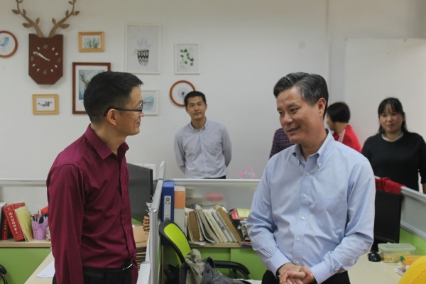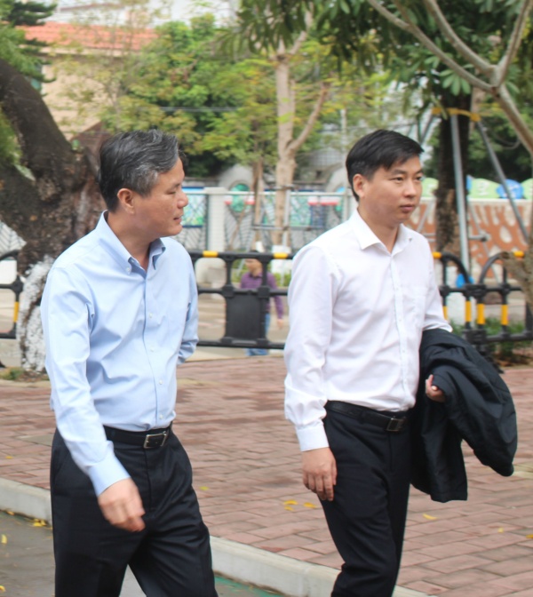 黃順歡書記一行一到學校就立即巡視校園,詢問學校學生等候區、科技樓和飯堂等場地的維修情況。