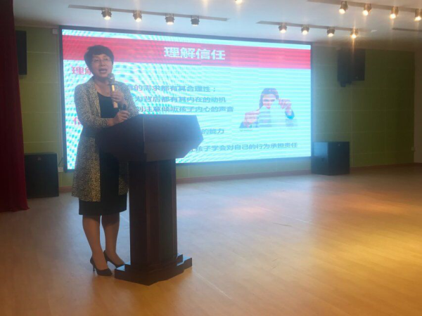 本次活動分三個流程。首先是各班孩子的才藝展示,孩子們自信大方的精彩表演贏得了老師、家長們的陣陣掌聲。緊接著是學校家長課堂,由來自中山市家庭教育工作協會的賈改蓮老師主講的專題講座——《讓孩子在良好的親子關系中健康成長》。賈老師用飽滿的熱情,發人深省的例子講述了良好的親子關系對孩子健康成長的重要性。會場座無虛席,家長們聚精會神地聆聽這場精神盛宴。最后,家長回到各自的班級召開班級家長會,由各班科任老師與家長們面對面的交流。