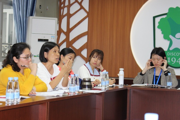 聽完兩位老師的示范課之后,雪菊老師和全體語文老師進(jìn)行評課議課。這也是語文教師對于現(xiàn)在課改現(xiàn)狀的一次思想的交流和碰撞,這對于各位語文老師來說都是不可多得的學(xué)習(xí)機(jī)會。先是由泳仙老師講述她的教學(xué)設(shè)計,雪菊老師表揚(yáng)了泳仙老師的語文素養(yǎng),肯定這節(jié)課的教學(xué)設(shè)計,由《一千零一夜》入手,實現(xiàn)了從課內(nèi)到課外,全書到單篇教學(xué)的新課改理念。同時也提出了幾個思考點:1、精讀課文和略讀課文有什么區(qū)別?略讀課文應(yīng)不應(yīng)該講的這么細(xì)?2、略讀課文的要點是什么?設(shè)計的內(nèi)容有教學(xué)的意義嗎?在各位老師的彼此思想交流中,雪菊老師的一些話語給予泳仙老師的磨課團(tuán)隊很大的啟發(fā)。