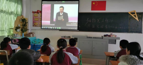 12月4日上午利用主題班會課給全校學生進行憲法學習教育,首先前10分鐘由德育主任陳文麗老師對什么是憲法日,憲法的重要性進行講述,然后由班級組織班級學生觀看今天在全國舉行的憲法晨讀活動的視頻,先后聽了澳門及重慶兩位學生的憲法演講,聽了教育部副部長的講話,給青少年提出了四點希望,明確了紀律的重要性,教育學生從小就要知法、懂法、守法,做守紀律的好公民,嚴于律己。之后由各班班主任帶領學生進行憲法朗讀,朗朗上口,聲音響遍整個校園,最后聽著明快、悅耳的《憲法伴我成長》這首歌結束本次主題班會課。在活動過程中,學生對憲法有了一些了解,即使低年級孩子還是朦朧的,但是至少知道法于國家、社會、學校,于自己的重要性。