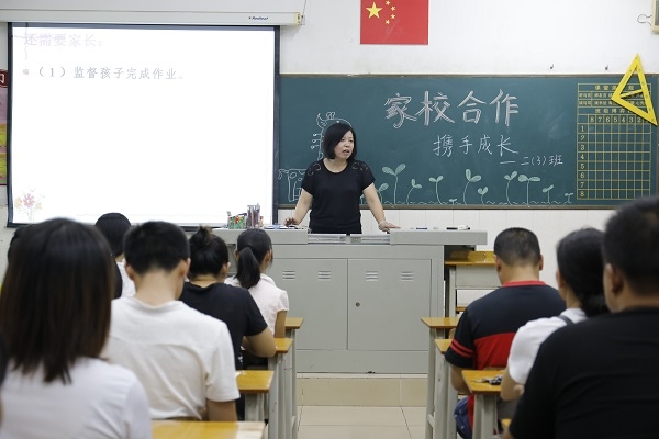 講座結束,第二個議程各班開家長會。各樓層教室燈火通明,座無虛席。發言的班主任和科任老師情緒飽滿,借助課件總結上學期同學們的學習習慣和學習態度,表揚優秀和進步的同學。簡述近三周學生的學習狀態,特別點出暑假中自主學習成果明顯的一些學生,對學生在家的學習作了明確要求。三年級各班老師準備了詳實的材料,讓家長對自己孩子的長處和短板有清晰的認識,對升入中年級學習難度有心理預期。一些新接手的老師迅速叫出全部學生的名字,跟家長的交流更有效果。五年級老師通過詳盡的課件,告訴家長們第二學期上級部門統一抽查測試的形勢,以及年級作出的充分的應對措施。特別是語文學科測試的高要求和板塊分布變化。家長們頻頻點頭,表示全力支持老師的教育教學工作。第三議程是各班家委會與班主任進行班級具體事務的商討。10點過后,一些教室還有老師在與家長單獨交流。學校領導堅守到最后。