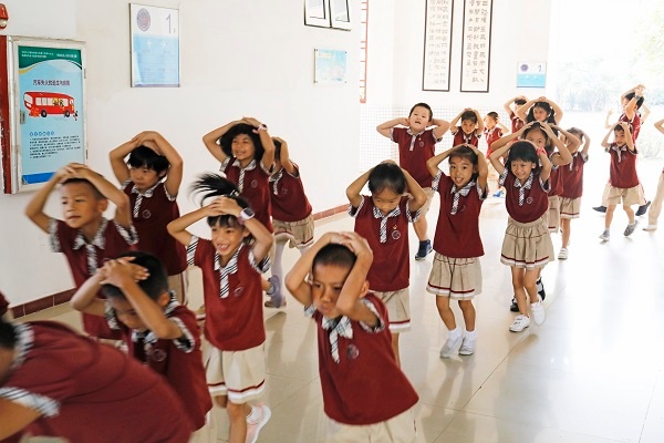 2019年9月18日上午10:00,新圩小學(xué)全校師生按照學(xué)校制定的活動方案,開展了地震疏散演練活動。