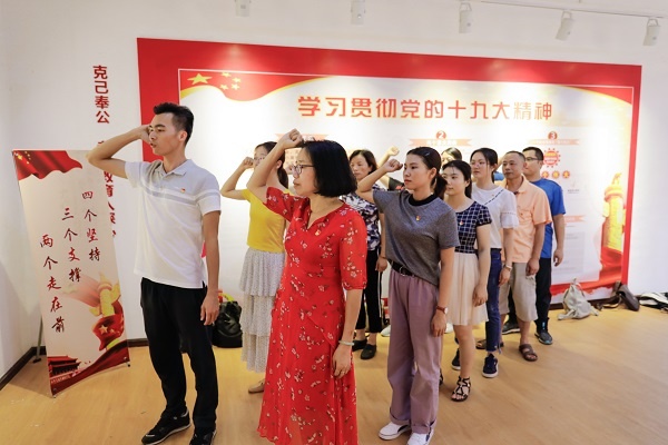 在鄭志勇同志的帶領下,黨支部一行還來到了橋頭學校舊址,興致勃勃地參觀了橋頭村黨建文化宣傳室和反腐倡廉教育室。在反腐倡廉教育室里,全體黨員舉起右拳,重溫入黨誓詞,向黨表明“不忘初心,牢記使命”的決心。