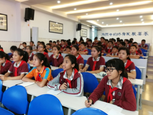 熊律師通過尊崇憲法、學習憲法、案例析法、誦讀憲法四個環節,給孩子們上了一節生動有趣的憲法大課堂。首先,通過《認識憲法》這個視頻,讓學生了解憲法,認識憲法,還知道了憲法對于人民有哪些保障。接著通過案例分析,讓同學們體會到:法律就在身邊,法律值得大家尊崇。熊律師還舉行PK賽,就憲法的相關知識提出了一系列的問題,同學們積極搶答。此外,還進行了憲法必會知識小測驗活動,讓憲法知識深入到學生心中;最后,熊律師帶動全體學生一起誦讀憲法,憲法之聲在階梯教室里回響。