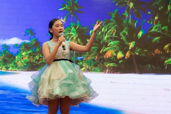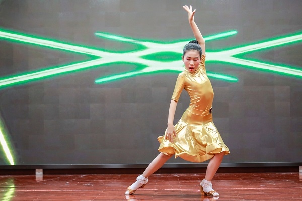 在歡快強(qiáng)勁的《炫舞拉丁》后,三(3)班的經(jīng)典唱誦《明日歌》壓軸演出。這個節(jié)目在前不久舉行的全校經(jīng)典誦讀比賽中脫穎而出,領(lǐng)讀、齊誦、伴舞俱佳,有震撼效果。