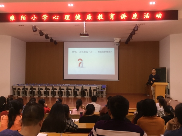 為了深入貫徹《國家中長期教育改革和發展規劃綱要》和教育部《中小學心理健康教育指導綱要》精神,提升教師利用心理學知識教育學生的能力,4月15日下午,雍陌小學邀請紀念中學的張均華老師給全體教師做以《后來者,如何居上》為主題的心理健康教育講座。