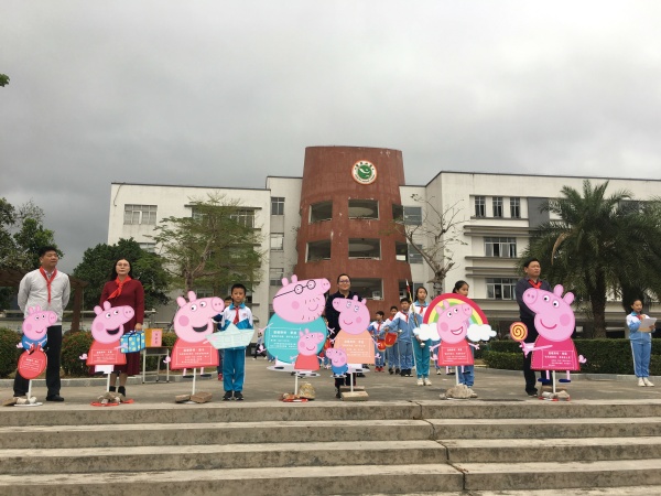根據社會主義核心價值觀、央廣網“習聲回響·溫暖聆聽”中的六個問候以及勉勵:祝福、真情、牽掛、奮斗、關愛、信念,雍陌小學“溫暖攜手行 追夢雍小人”的開學典禮活動開始了。學生走過紅地毯,迎接他們的是6個可愛的“小豬佩奇”卡通人物。它們的著裝充滿了濃濃的傳統文化韻味,一句詩、一句祝賀語,構成了“祝福、真情、牽掛、奮斗、關愛、信念”六個篇章內容。