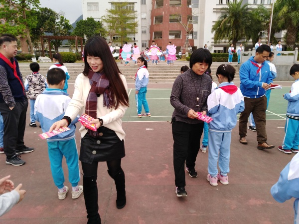雍陌小學迎來了6個可愛的“小豬佩奇”,他們也給全體師生送來句句暖心話。讓我們一起溫暖聆聽:陳苕校長給我們帶來的美好“祝福”。五4班黃瑩同學給我們送上的“真情”話語。家委會副會長林小群女士為我們送上的“牽掛”。三1班許博林同學給我們帶來了“奮斗”的鼓勵。傅春燕老師給我們道出為人師的句句“關愛”。王副校長給我們帶來了堅定的“信念”。一詩一祝福,滿滿的福氣回蕩在雍陌小學內,我們都在努力奔跑,我們都是追夢人,為雍小人的身份感到幸福!除了這6個可愛的“小豬佩奇”給大家送上溫暖的祝賀,瞧,老師們手中拿著大大的紅包。這是老師用心為同學們準備的一份開學禮物,祝愿大家學習進步,身體健康,好運相伴!