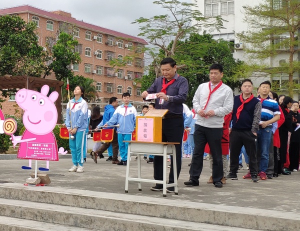 全體師生參加升國旗儀式,朗誦社會主義核心價值觀以及感恩詞,敬重地向老師行鞠躬禮。這些活動可以培養學生愛國、愛校、愛家的情懷。為大力宣傳和倡導慈善博愛、救死扶傷的人道精神,傳播紅十字文化,開學典禮以“慈善獻愛心”拉開帷幕。老師們用“愛心撐起一片艷陽天”,由陳苕校長、王建林副校長帶頭捐獻善款,全體老師也捐出一份愛心,奉獻一片真情。做善事不甘落后,各班代表也迫不及待地排好隊,有序地進行捐款。人人獻一點愛心,世界將會更美好,全體師生在成長路上一直與愛同行。