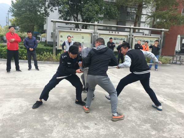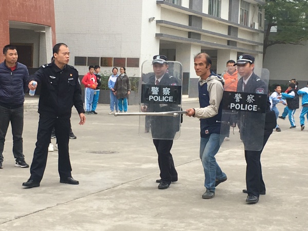 1月10日中午12:30,德育處組織了全體護衛隊成員開展了“防暴防恐演練”活動。此次活動還邀請了肖家村派出所黃偉龍警官及他的隊員一起到現場指導工作、與三鄉110指揮中心作好溝通聯系。